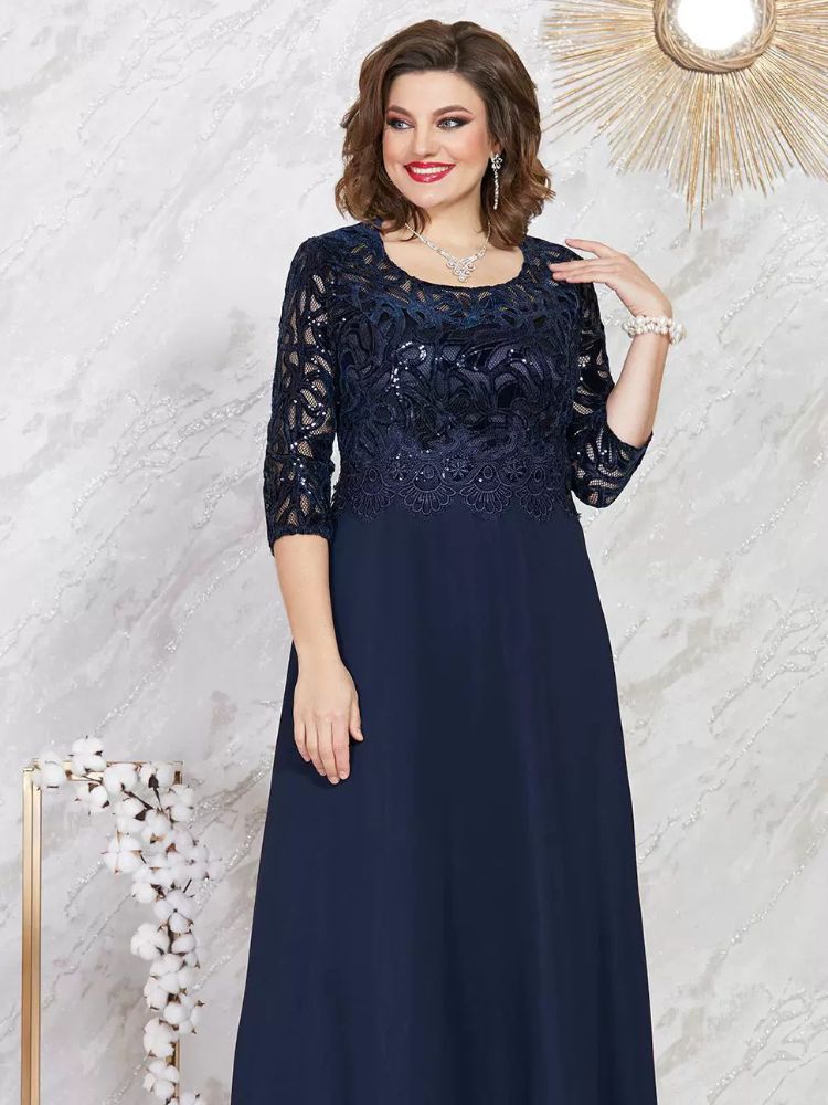 Robe longue bleu marine élégante pour cérémonie et mère de mariée